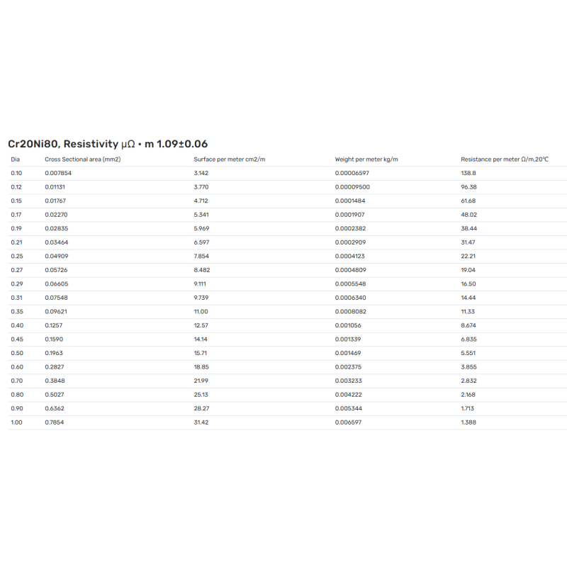 Le fil Nichrome est un fil en alliage austénitique composé de 80% de nickel et 20% de chrome. Il est utilisé à des températures de fonctionnement allant jusqu'à 1 200 ° C et possède une bonne résistance à l'oxydation et à la corrosion. De plus, le fil de résistance a une bonne formabilité et ductilité.
